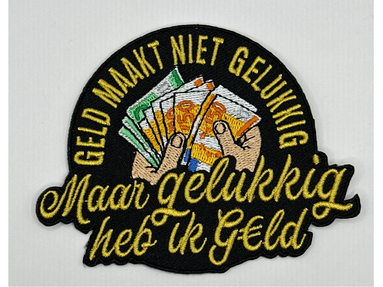 Geld maakt niet gelukkig maar gelukkig heb ik geld embleem